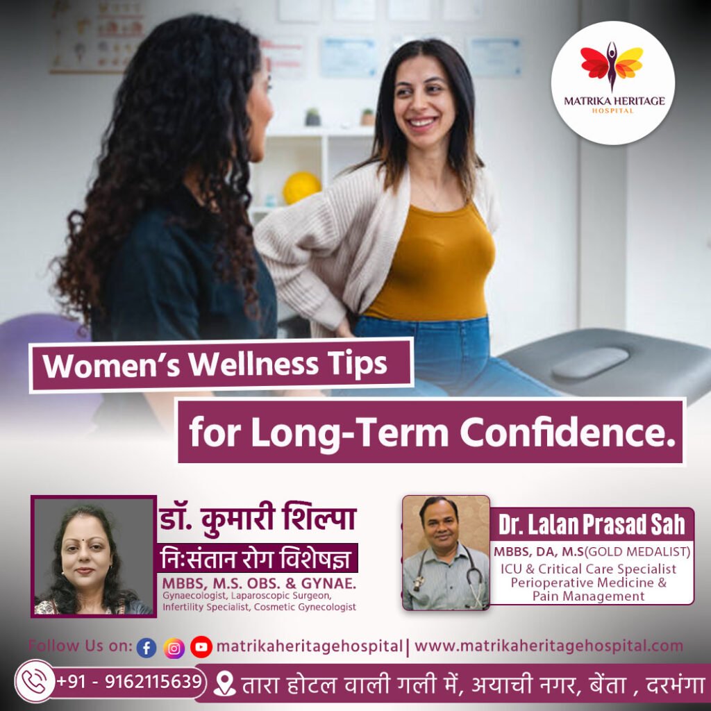 महिलाओं के दीर्घकालिक आत्मविश्वास के लिए वेलनेस टिप्स डॉ. कुमारी शिल्पा द्वारा सुझावित, मातृका हेरिटेज हॉस्पिटल, दरभंगा आत्मविश्वास न केवल