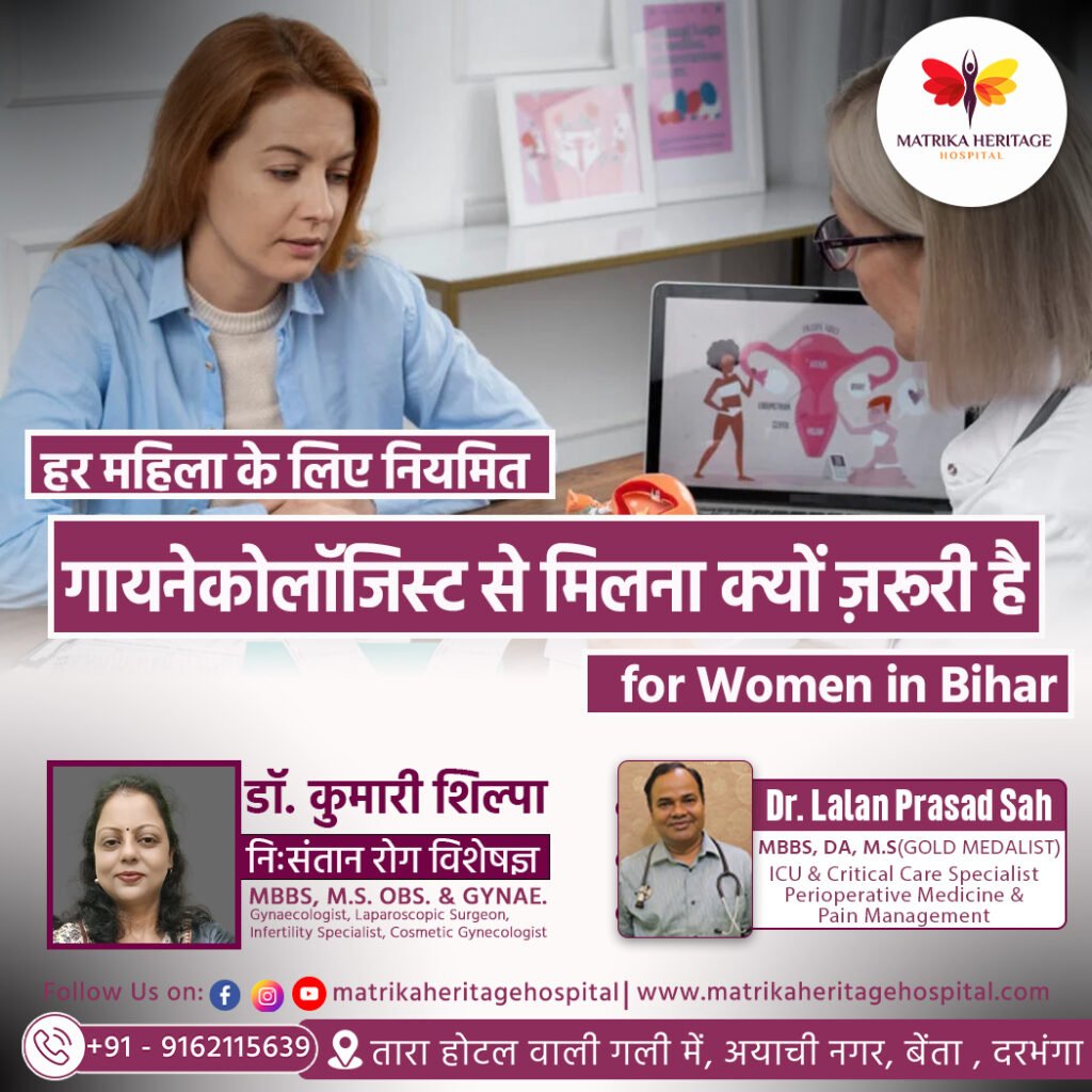 दरभंगा की महिलाओं के लिए नियमित स्त्री रोग जांच क्यों ज़रूरी हैडॉ. कुमारी शिल्पा द्वारा सुझावित, मातृका हेरिटेज हॉस्पिटल, दरभंगा